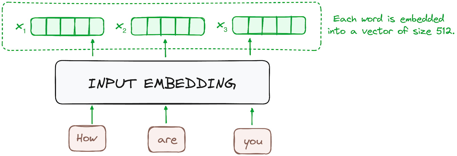 The embedding only happens in the bottom-most encoder. The encoder begins by converting input tokens - words or subwords - into vectors using embedding layers. These embeddings capture the semantic meaning of the tokens and convert them into numerical vectors.