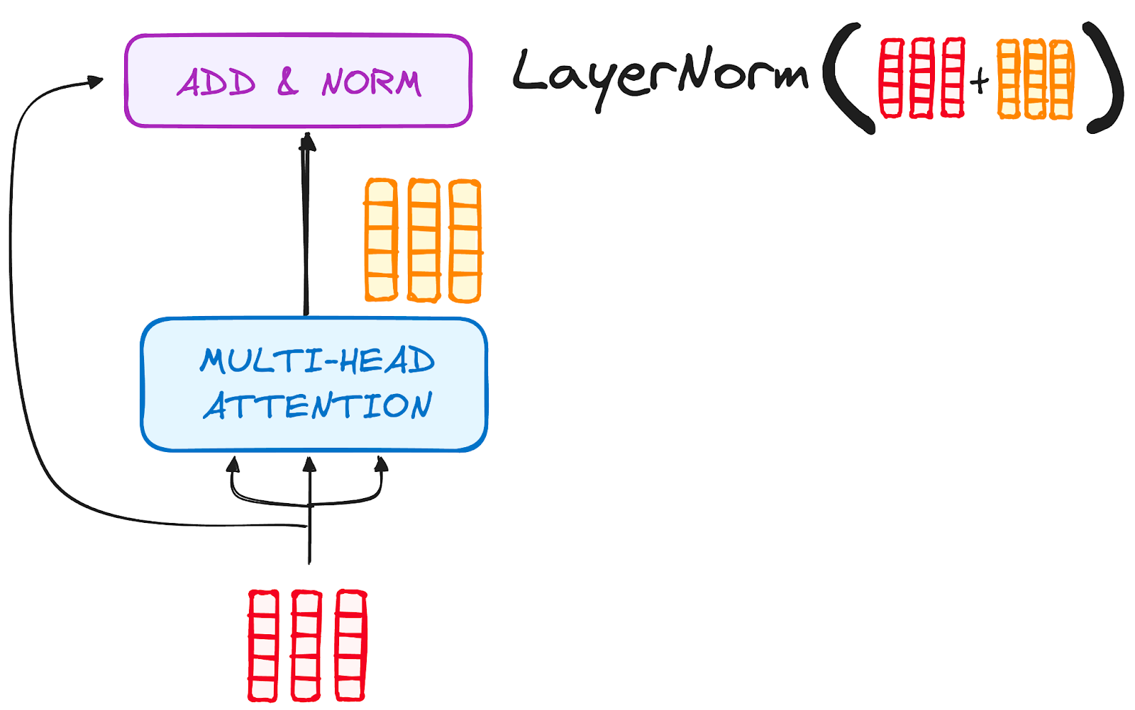 Each sub-layer in an encoder layer is followed by a normalization step. Also, each sub-layer output is added to its input (residual connection) to help mitigate the vanishing gradient problem, allowing deeper models. This process will be repeated after the Feed-Forward Neural Network too.