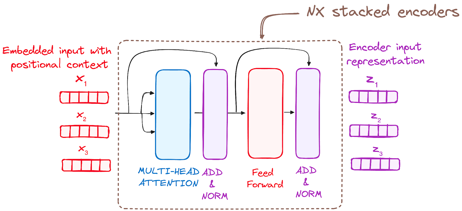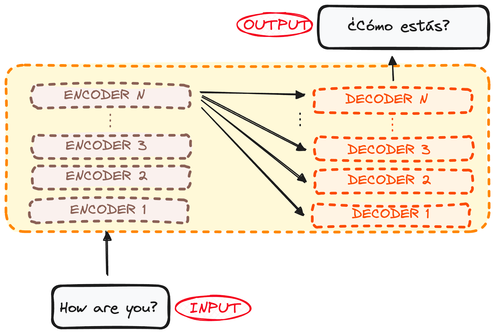 The original architecture consisted of 6 encoders and 6 decoders, but we can replicate as many layers as we want. So let’s assume N layers of each.