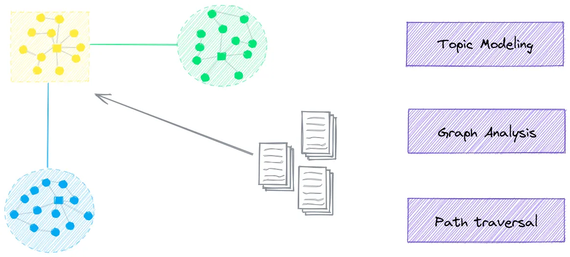 When a graph index is enabled, topics are assigned to each of the entries in the embeddings instance. Topics are dynamically created using a sparse index over graph nodes grouped by community detection algorithms.
